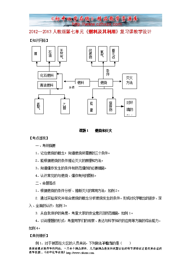 2012--2013人教版第七单元《燃料及其利用》复习课教学设计
