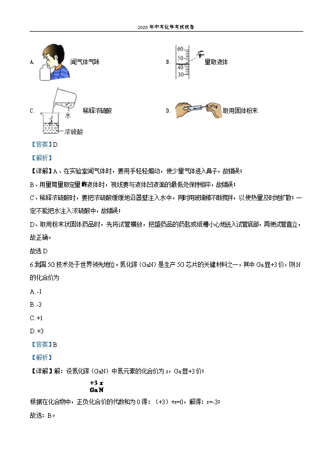 江苏省盐城市2020年初中毕业学业统一考试化学试卷(解析版)