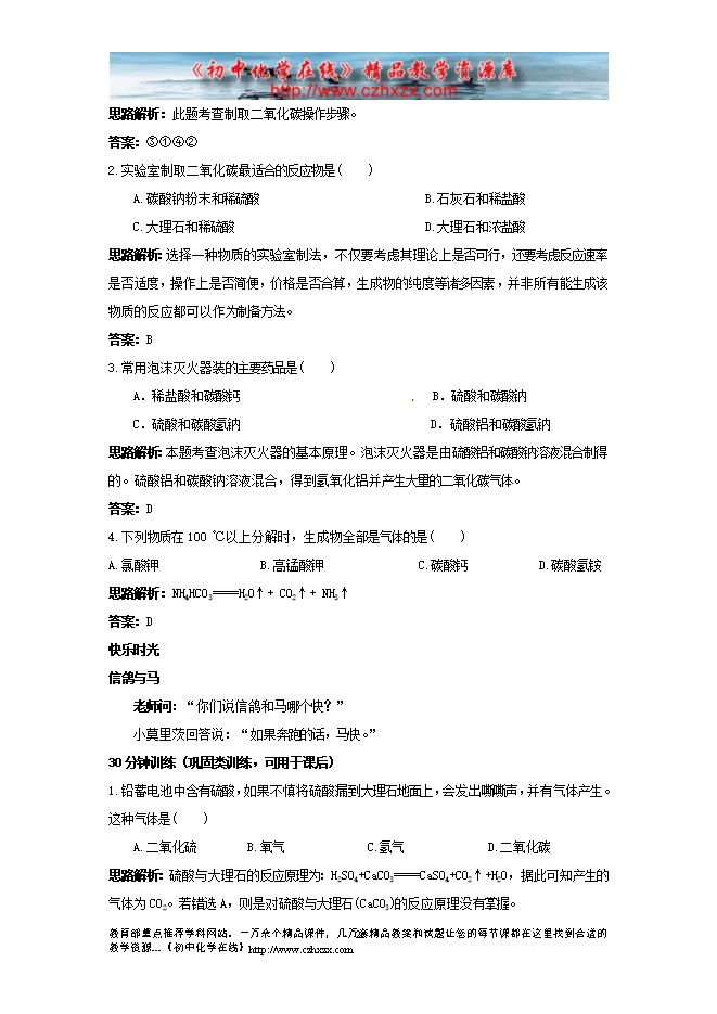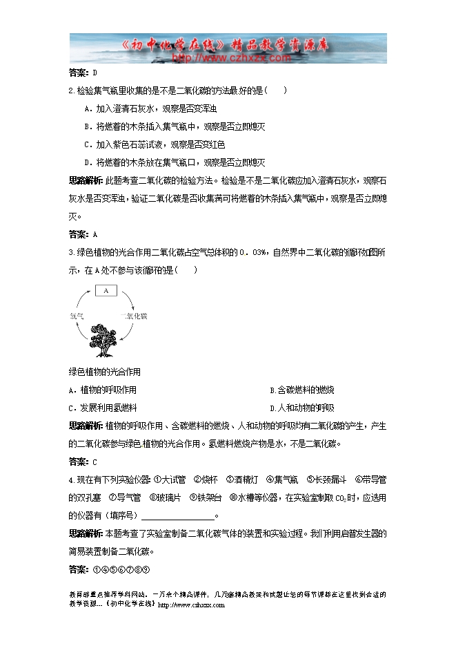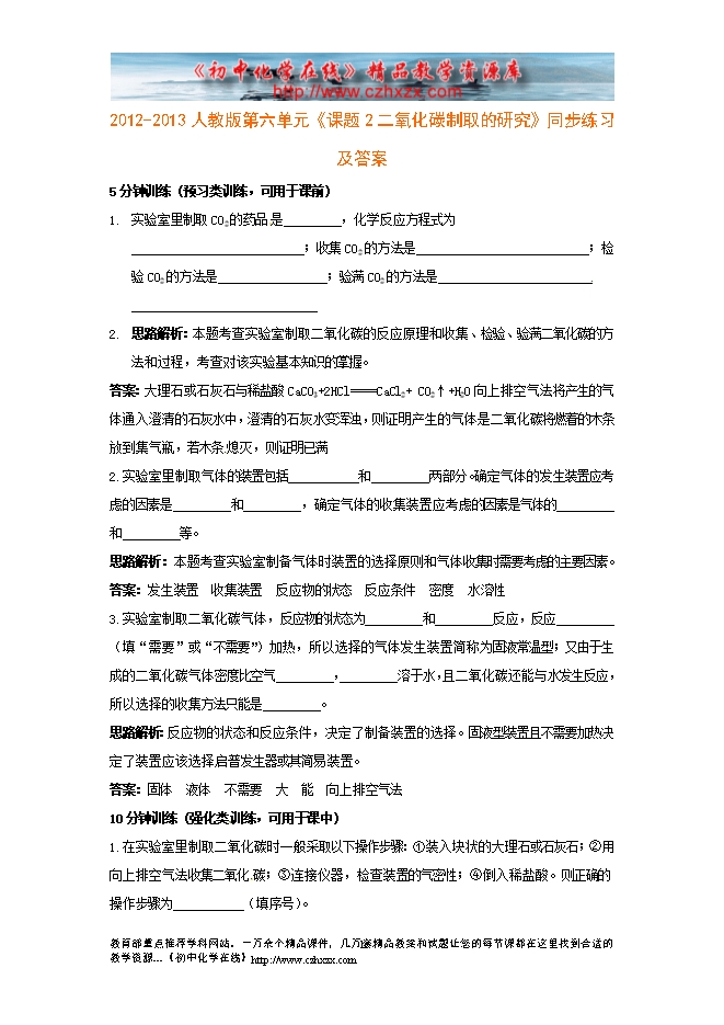 2012-2013人教版第六单元《课题2 二氧化碳制取的研究》同步练习及答案