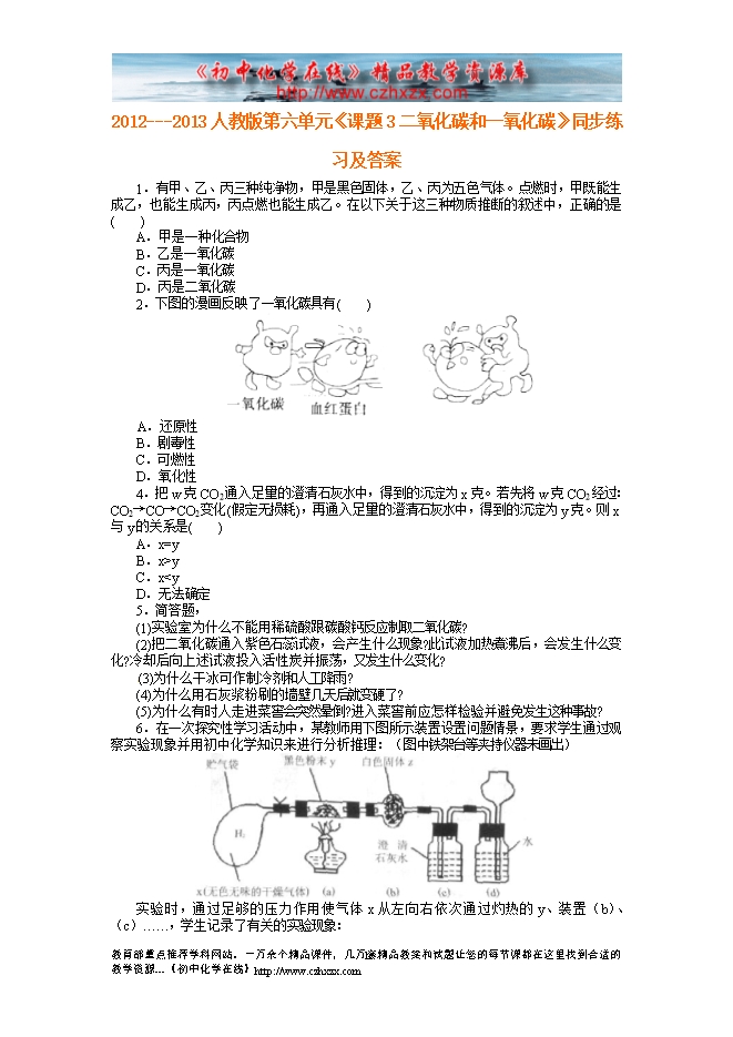 2012---2013人教版第六单元《课题3二氧化碳和一氧化碳》同步练习及答案2