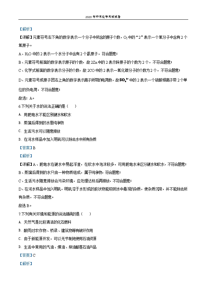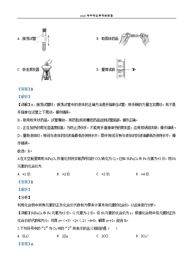 新疆2020年初中毕业学业统一考试化学试卷(解析版)
