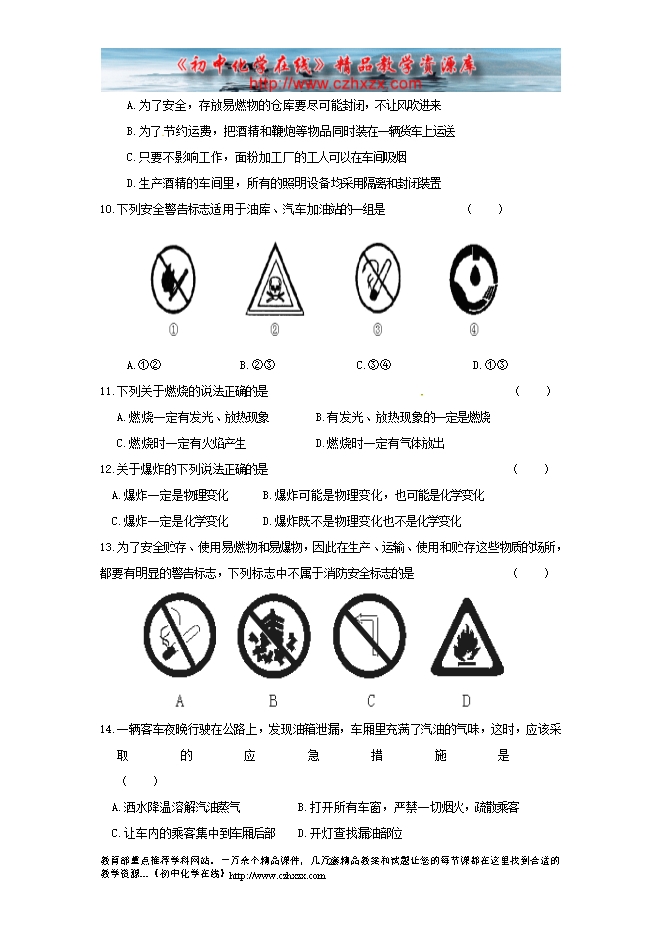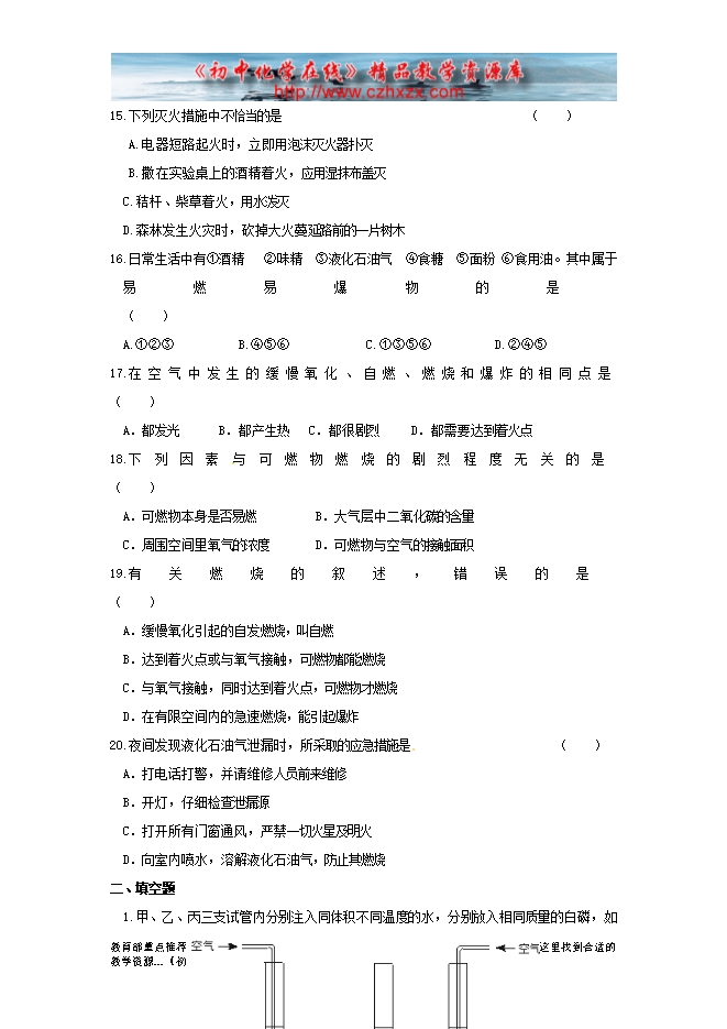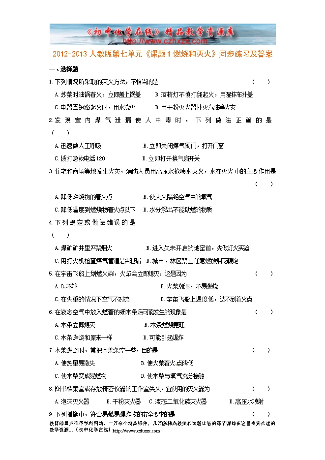 2012-2013人教版第七单元《课题1 燃烧和灭火》同步练习及答案