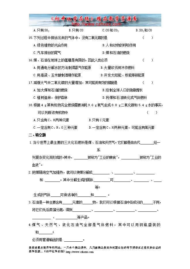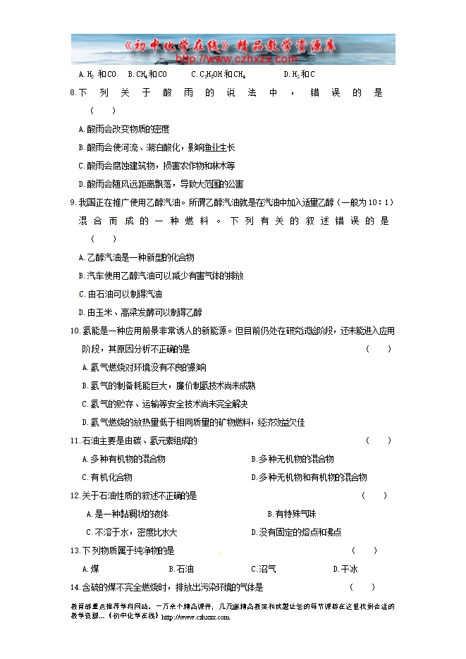 2012-2013人教版第七单元《课题2 燃料的合理利用与开发》同步练习及答案2