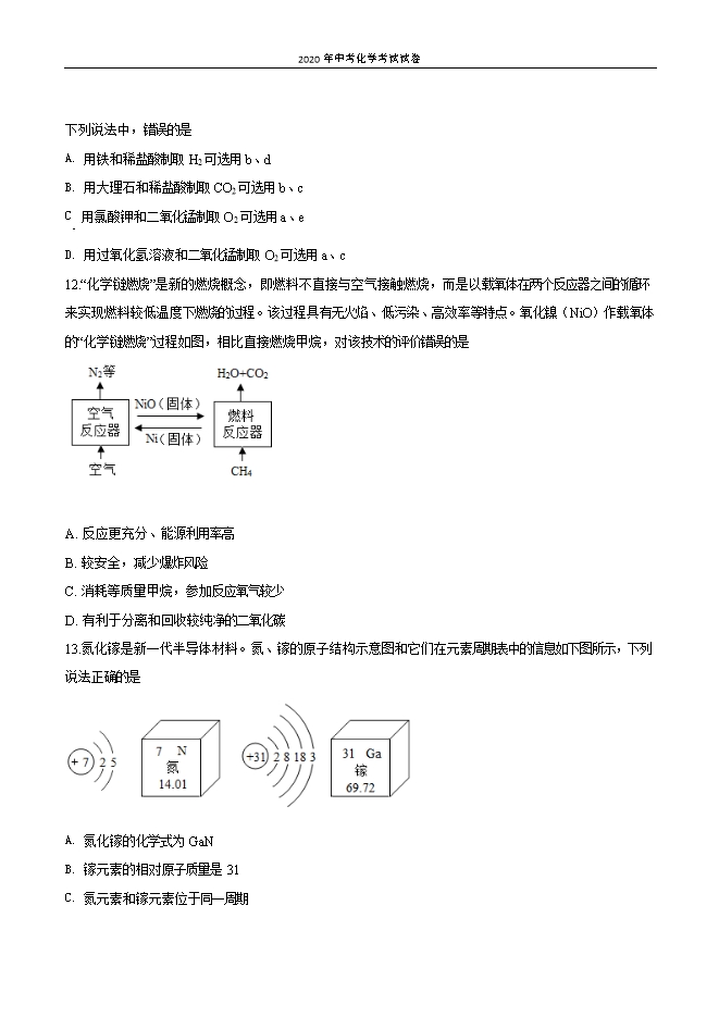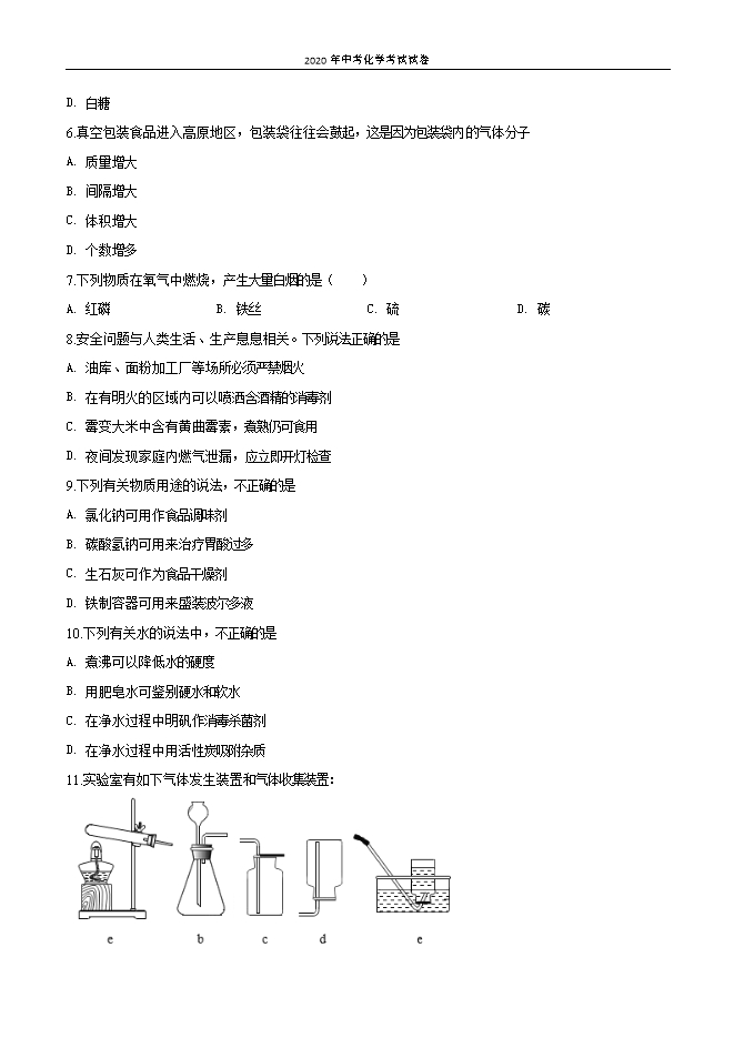 四川省攀枝花市2020年初中毕业学业统一考试化学试卷(原卷版)