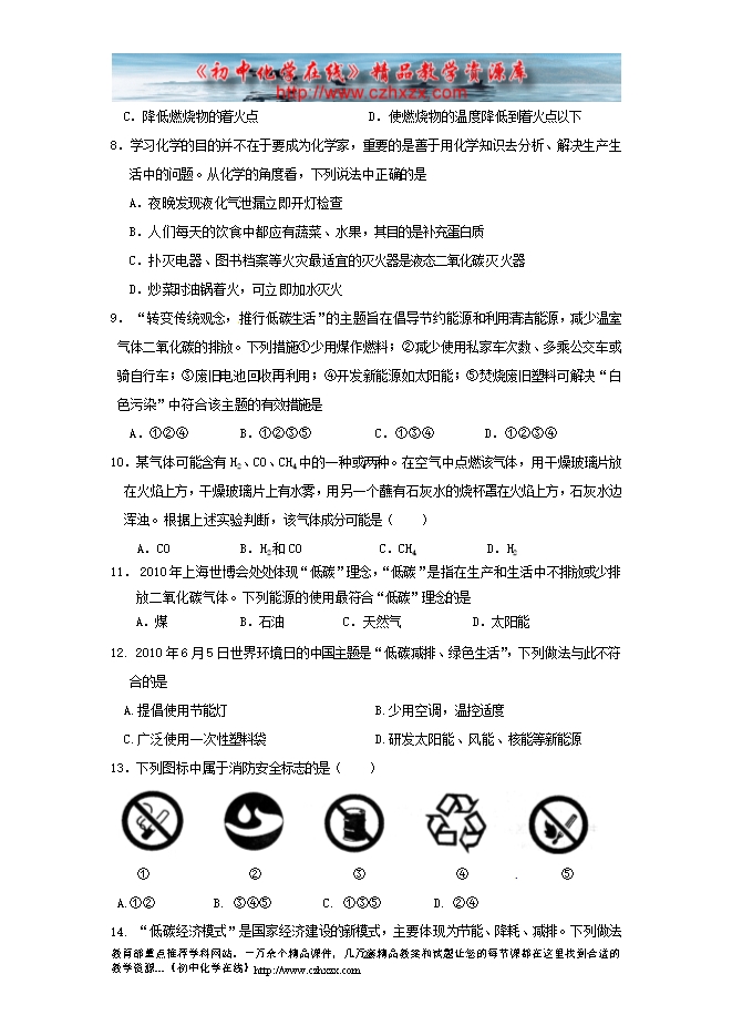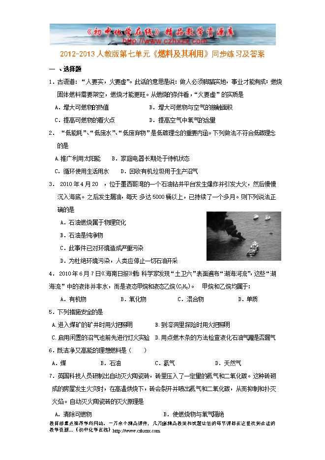 2012-2013人教版第七单元《燃料及其利用》同步练习及答案