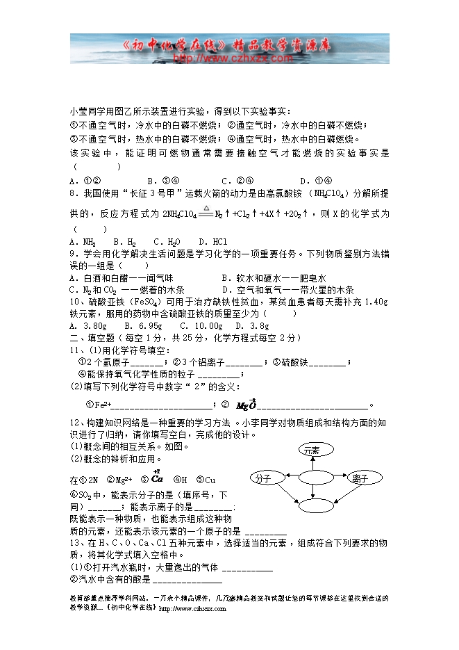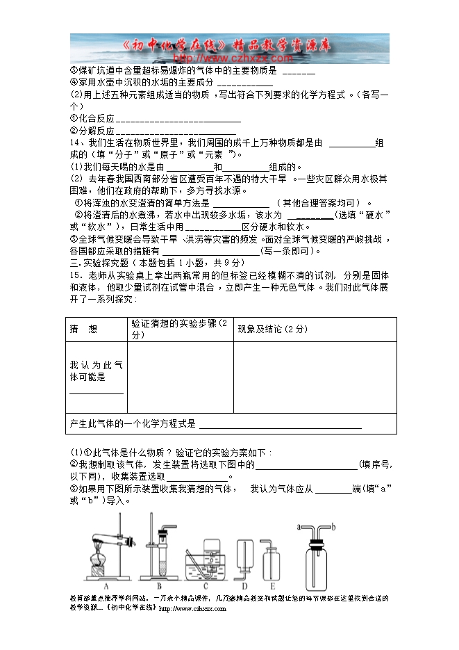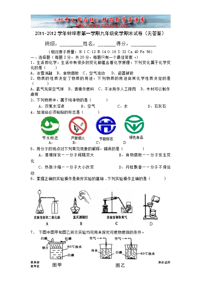2011-2012学年安徽省蚌埠市第一学期九年级化学期末试卷(无答案)