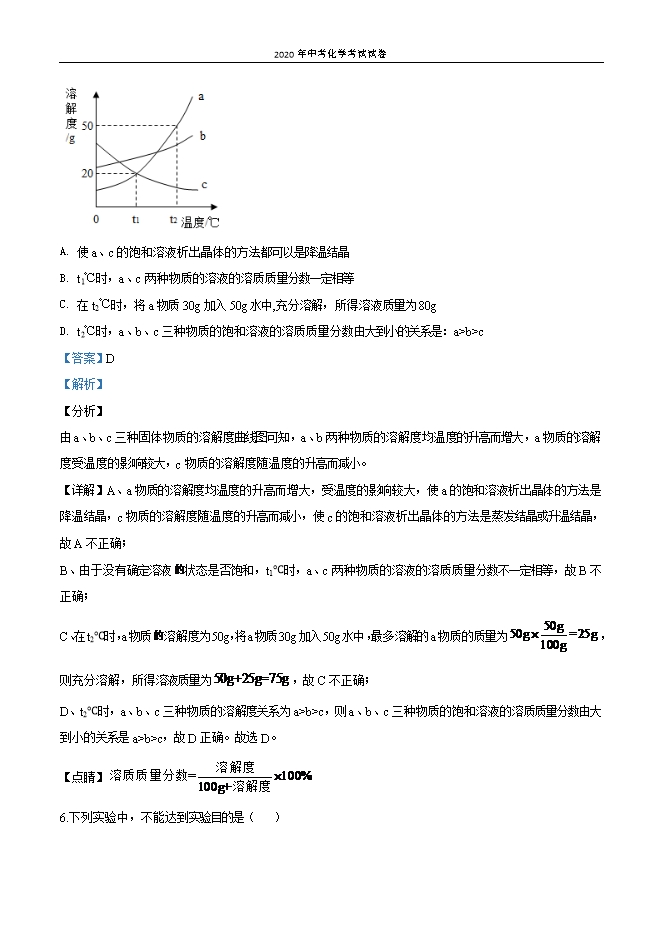 四川省达州市2020年初中毕业学业统一考试化学试卷(解析版)