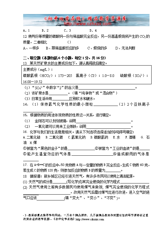 - 下一份试卷:鲁教版第一学期九年级化学期末模拟试卷(无答案)