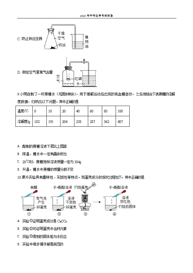 山西省2020年初中毕业学业统一考试化学试卷(原卷版)