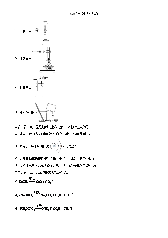 陕西省2020年初中毕业学业统一考试化学试卷(原卷版)