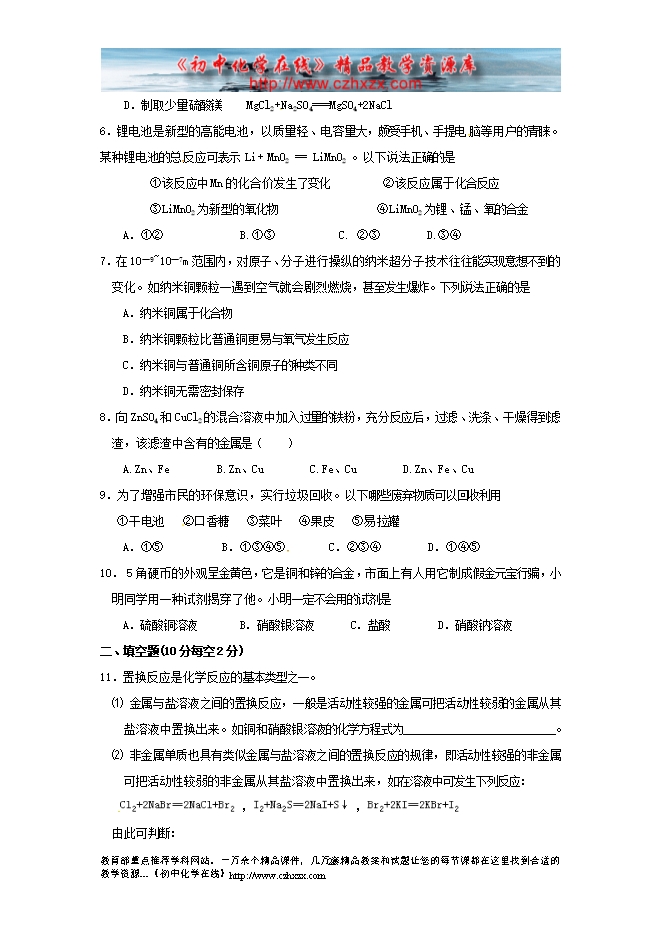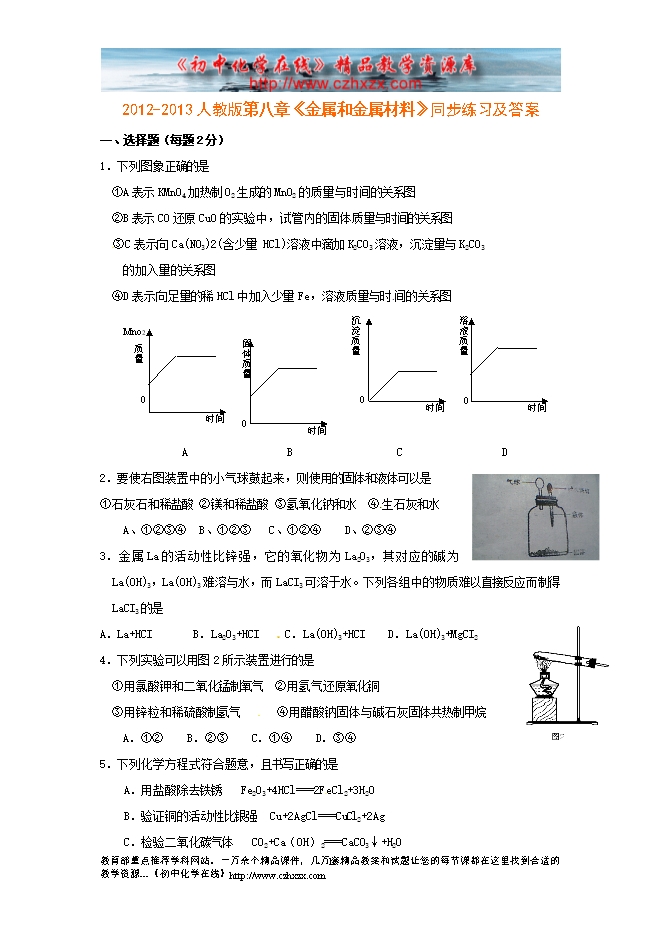 2012-2013人教版第八章《金属和金属材料》同步练习及答案