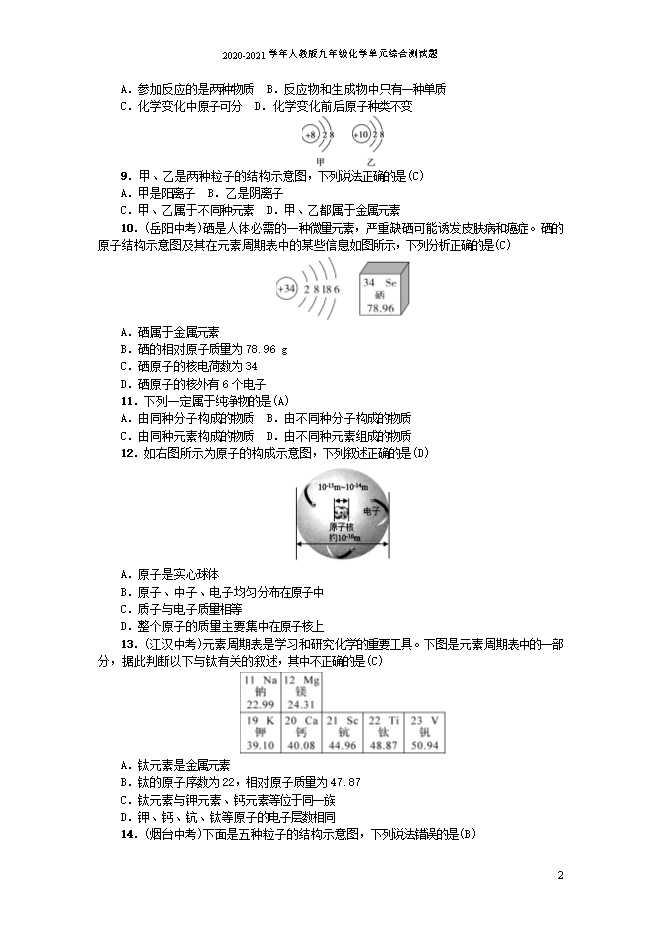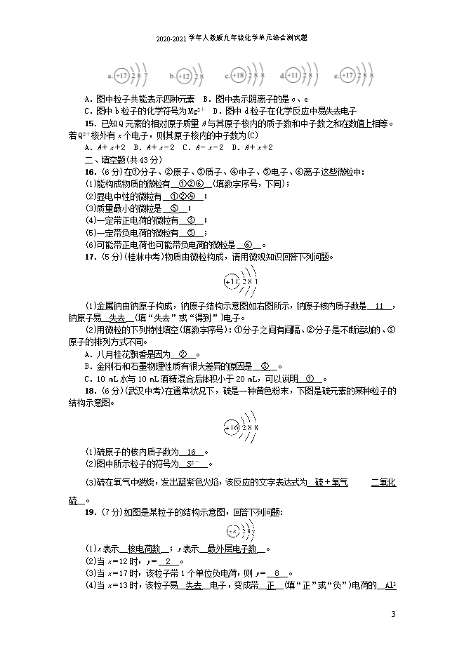 2020-2021学年人教版九年级化学《第三单元 物质构成的奥秘》单元综合测试题(word版含答案)