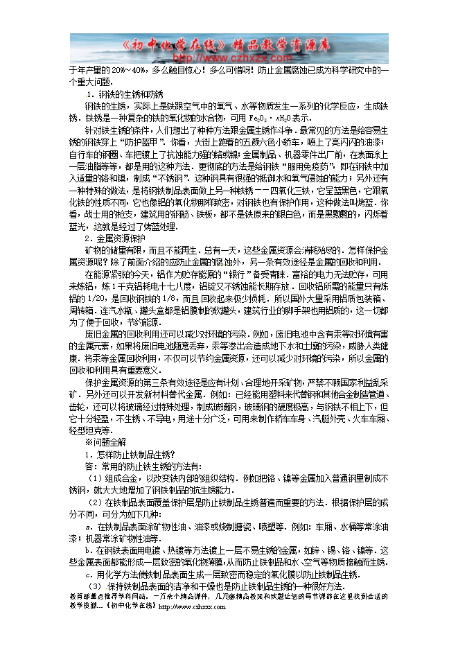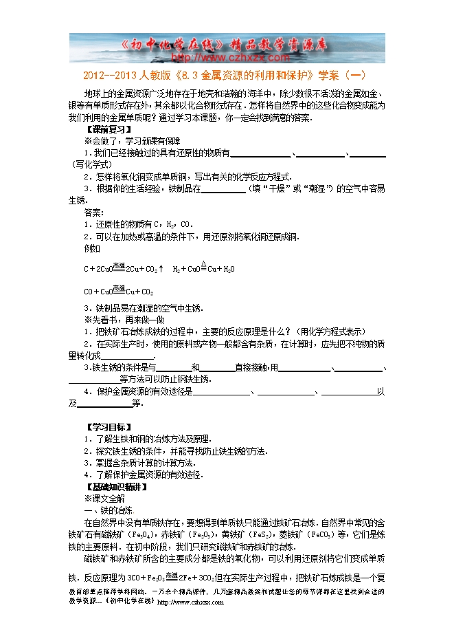 2012--2013人教版《8.3金属资源的利用和保护》学案(一)
