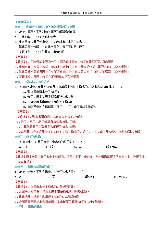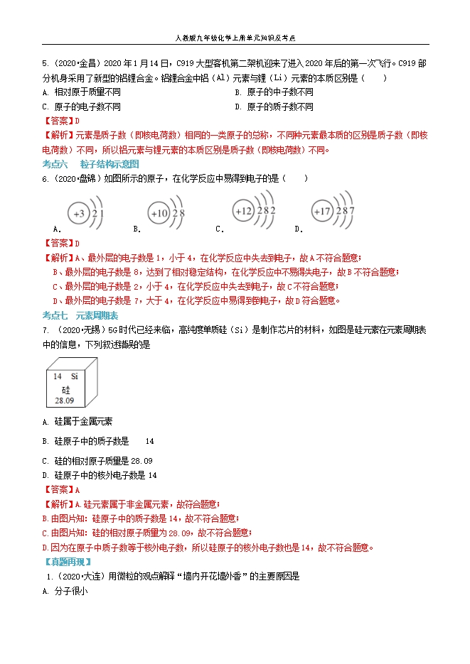 2020_2021学年人教版九年级化学上册《第三单元 物质构成的奥秘》单元知识及考点(word解析版)