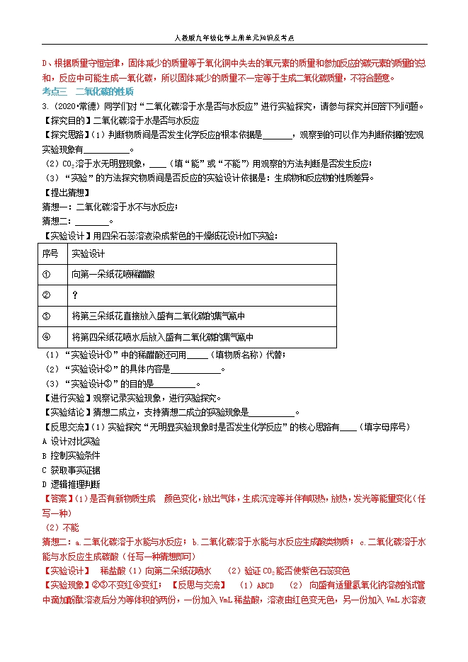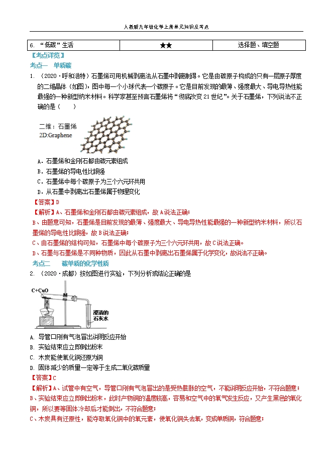 2020_2021学年人教版九年级化学上册《第六单元 碳和碳的氧化物》单元知识及考点(word解析版)