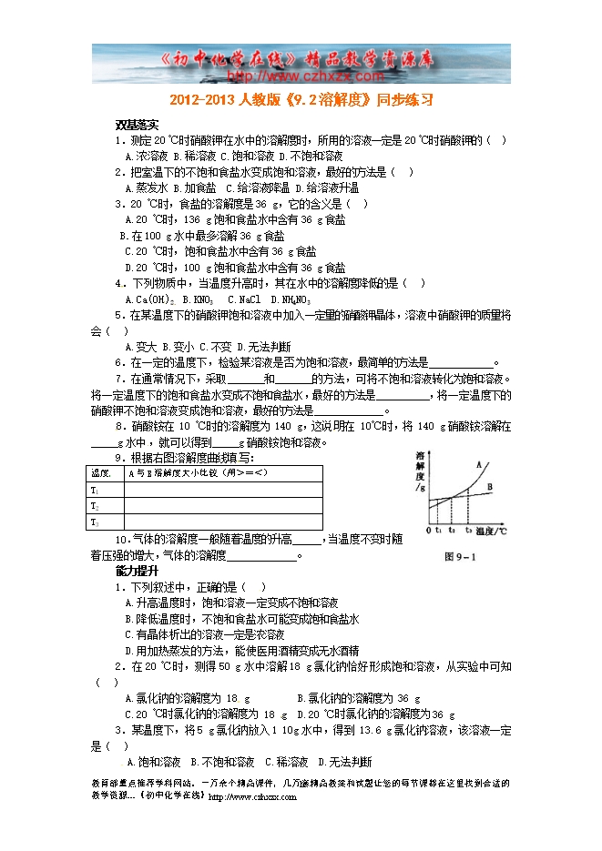 - 下一份试卷:2012-2013人教版《9.3溶液的浓度》同步练习