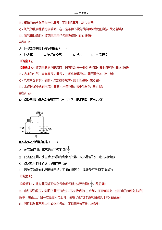 2021中考复习:人教版初中化学《第2单元 我们周围的空气 》单元测试提升卷(解析版)