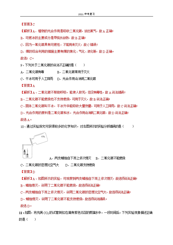 2021中考复习:人教版初中化学《第6单元 碳和碳的氧化物》单元测试基础卷(解析版)