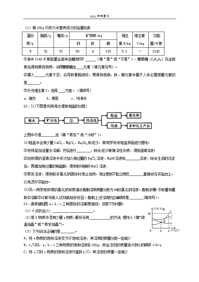 - 上一份试卷:2021中考复习:人教版初中化学下册综合测试提升卷(解析版)