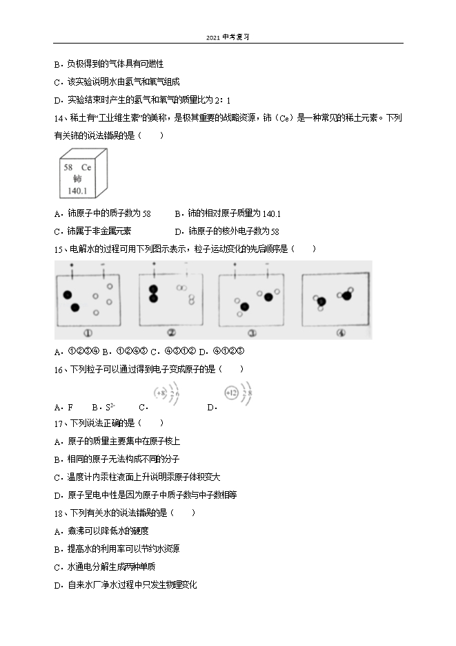 - 上一份试卷:2021中考复习:鲁教版初中化学《第2单元 探秘水世界》单元测试提升卷(解析版)