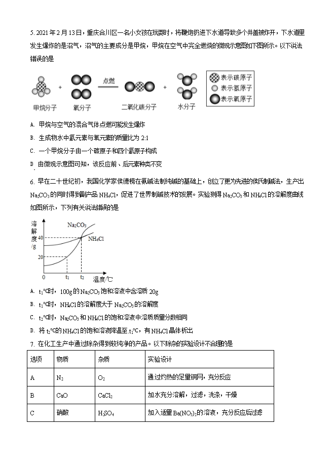 2021年四川省德阳市中考化学试题(原卷版)