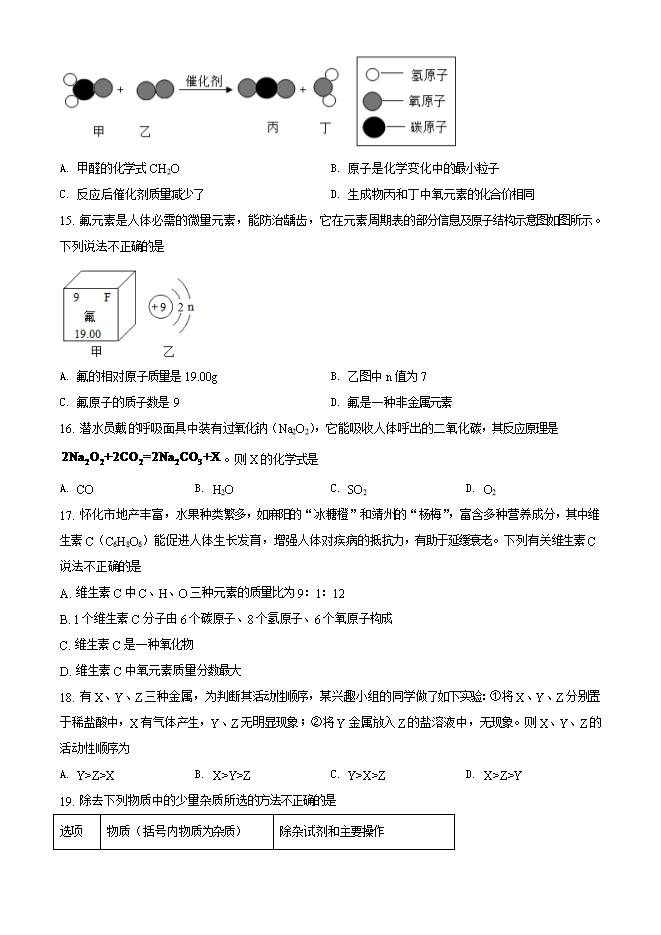- 上一份试卷:2021年湖南省怀化市中考化学试题(解析版)