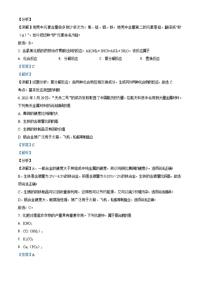 - 下一份试卷:2021年湖南省邵阳市中考化学试题(原卷版)