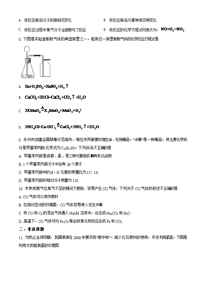 2021年湖南省永州市中考化学试题(原卷版)