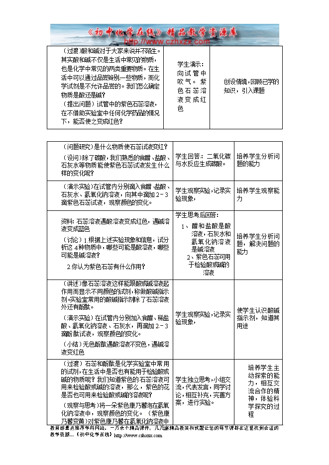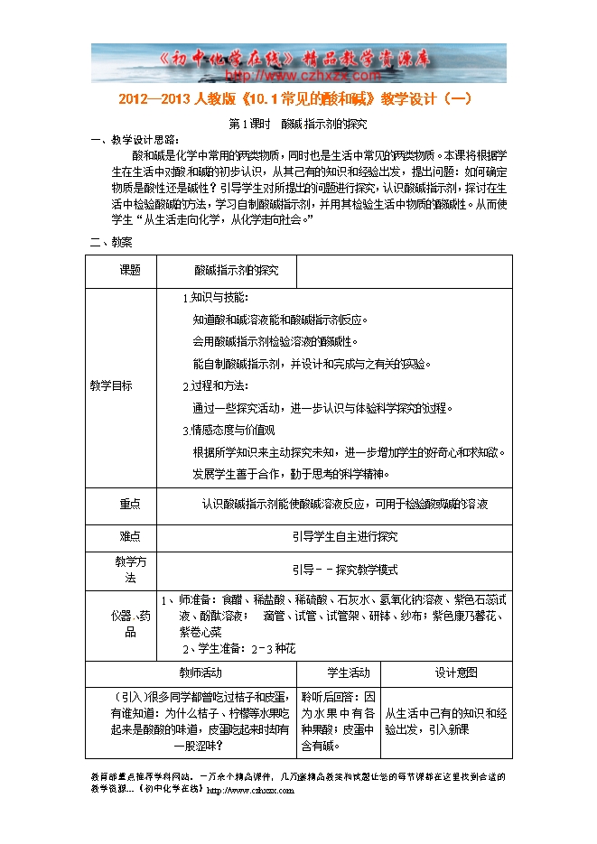 2012--2013人教版《10.1常见的酸和碱》教学设计(一)