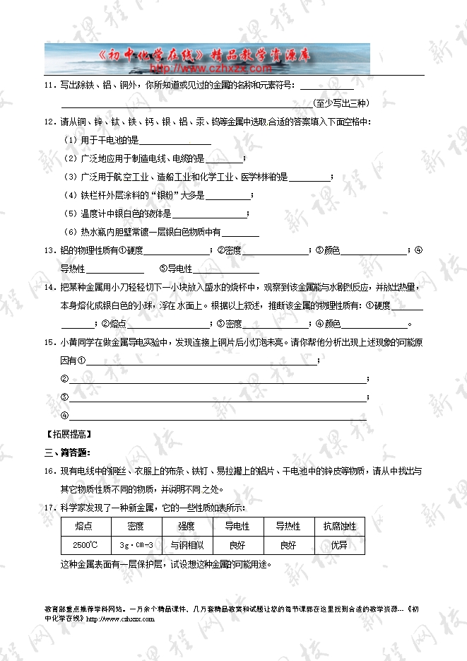2012-2013沪教版初中化学《5.1 金属的性质和利用》同步练习及答案