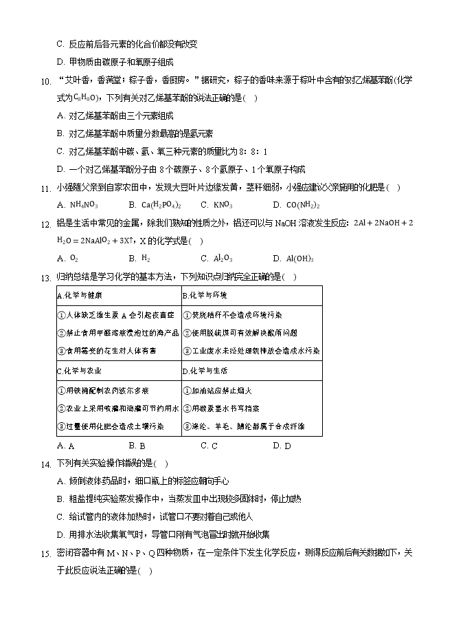 - 下一份试卷:2021年吉林省中考化学试题(解析版)