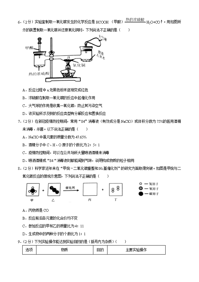 - 下一份试卷:2021年青海省中考化学试题(word版含答案)