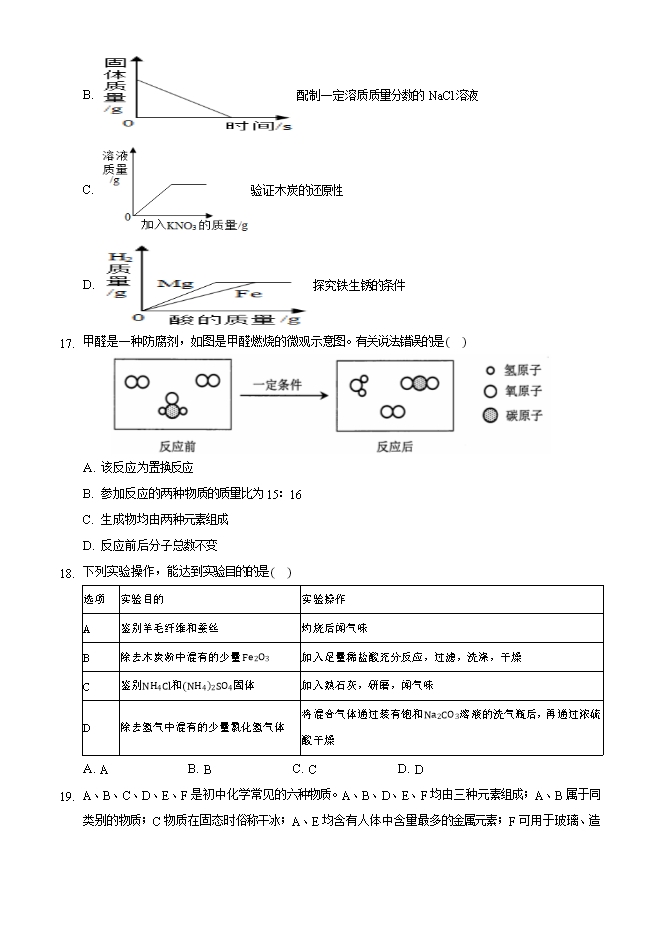 - 下一份试卷:2021年重庆市中考化学试题A卷(word版含答案)