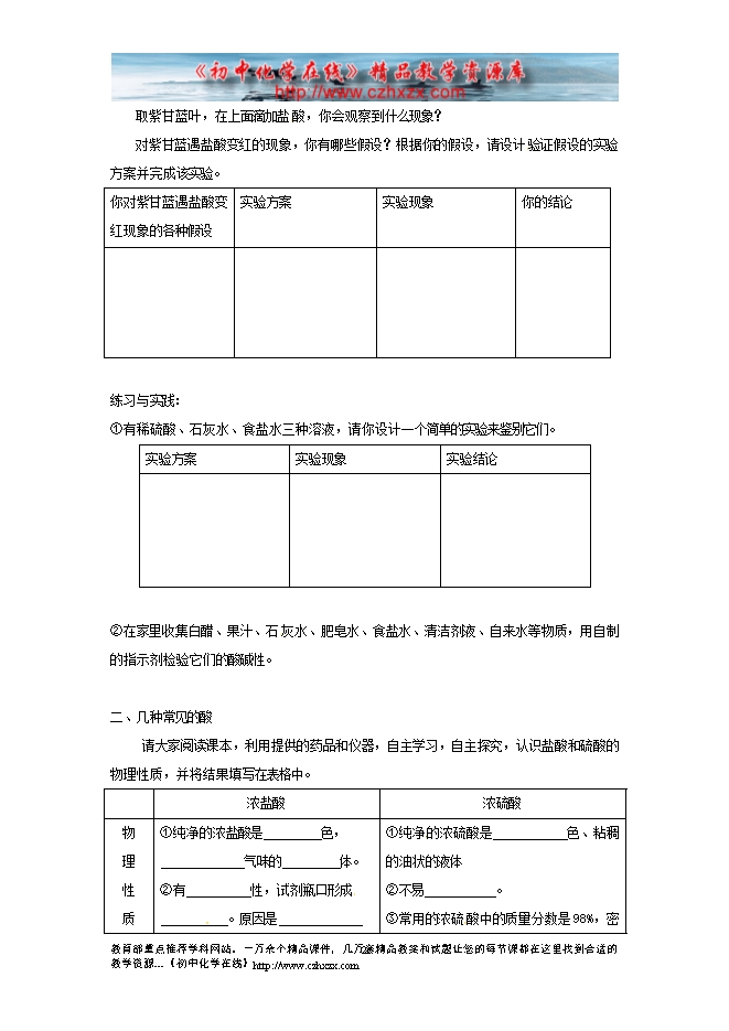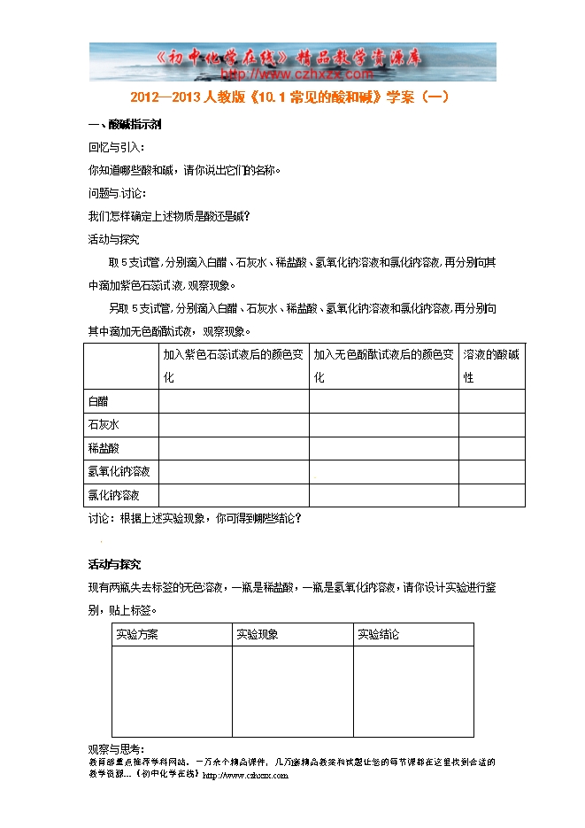 2012--2013人教版《10.1常见的酸和碱》学案(一)