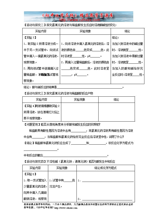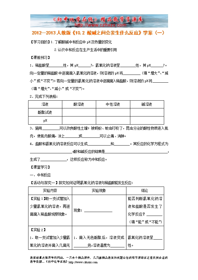 2012--2013人教版《10.2 酸和碱的中和反应》学案(一)