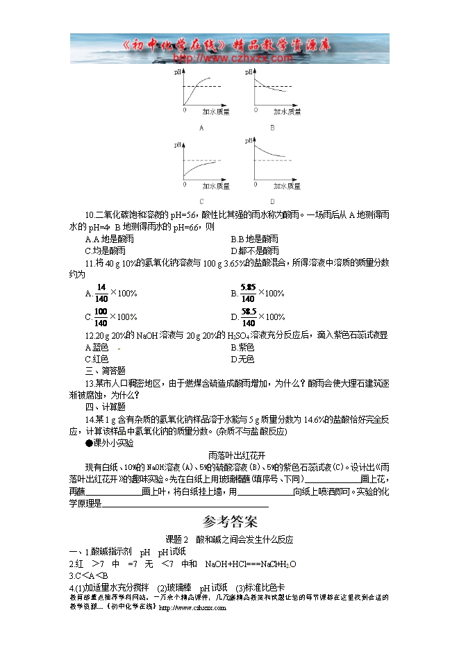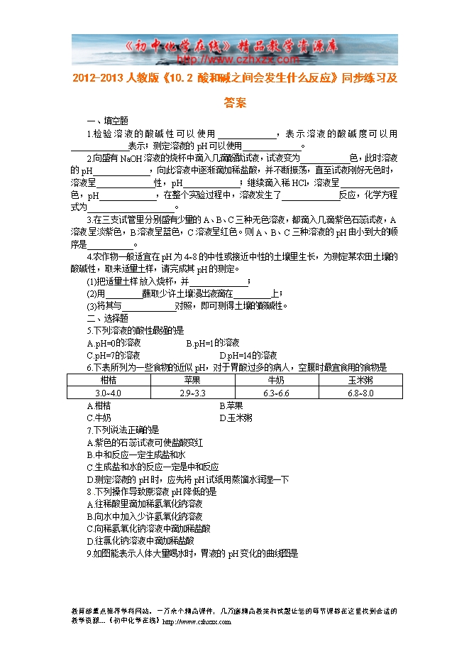 2012-2013人教版《10.2 酸和碱的中和反应》同步练习及答案