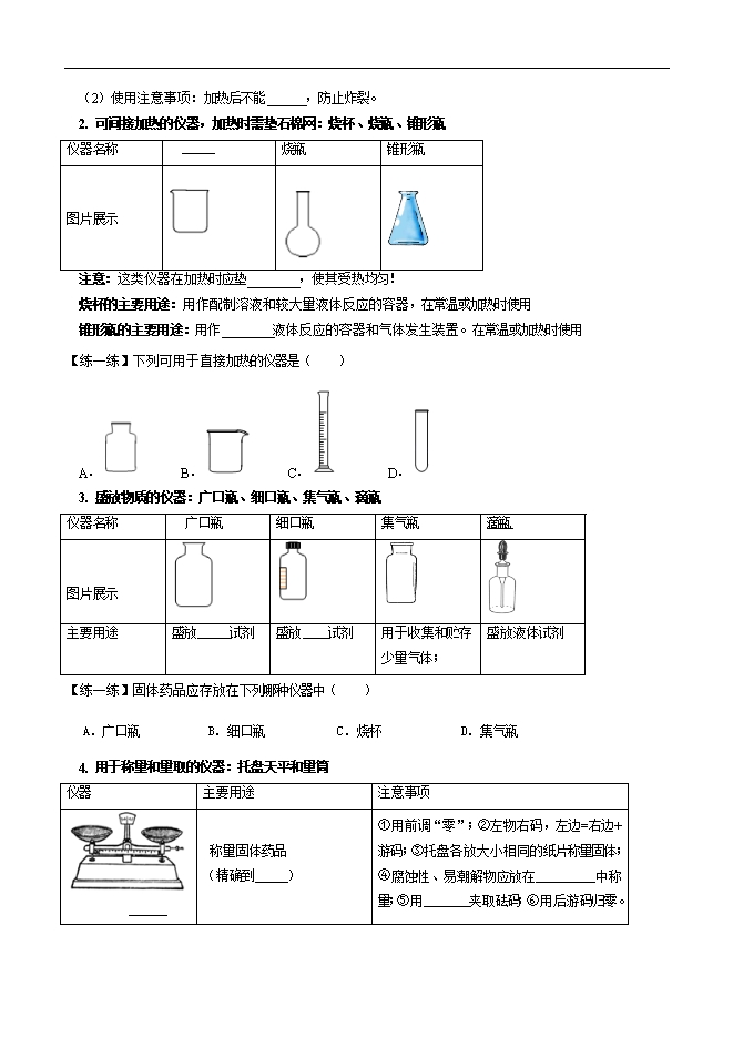 【精品】2021秋人教版初中化学《课题1.3 走进化学实验室(第一课时)》同步学案(原卷版)