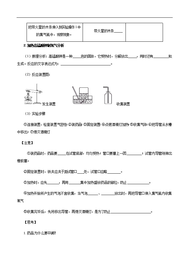 【精品】2021秋人教版初中化学《课题2.3 制取氧气》同步学案(原卷版)