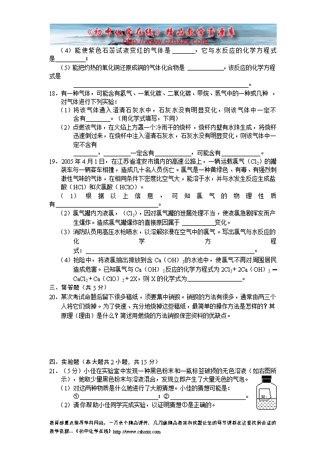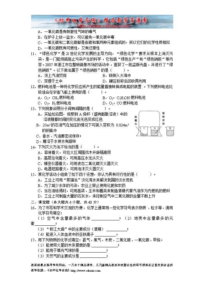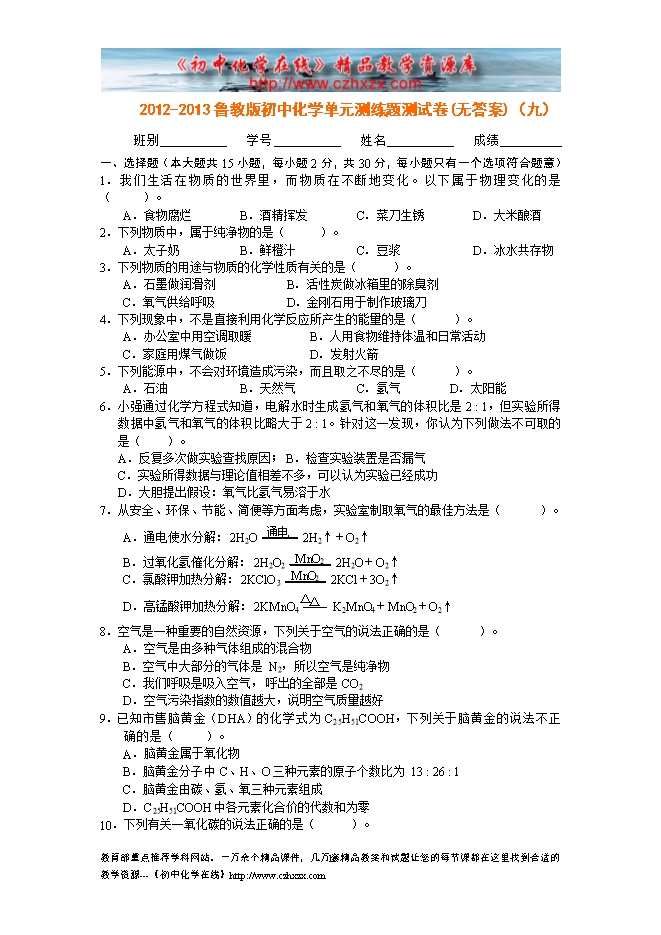 2012-2013鲁教版初中化学单元测练题测试卷(无答案)(九)
