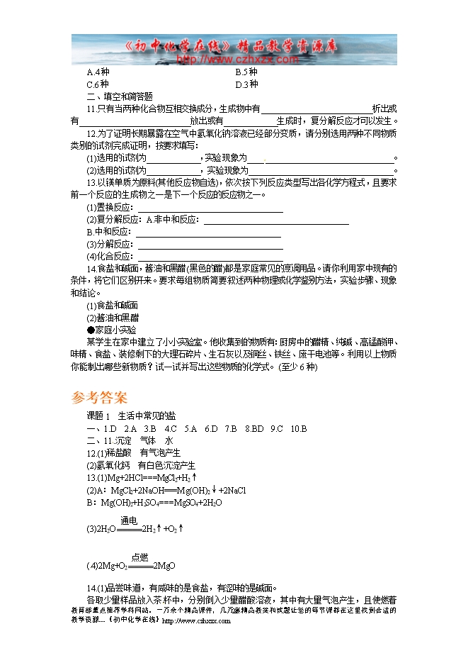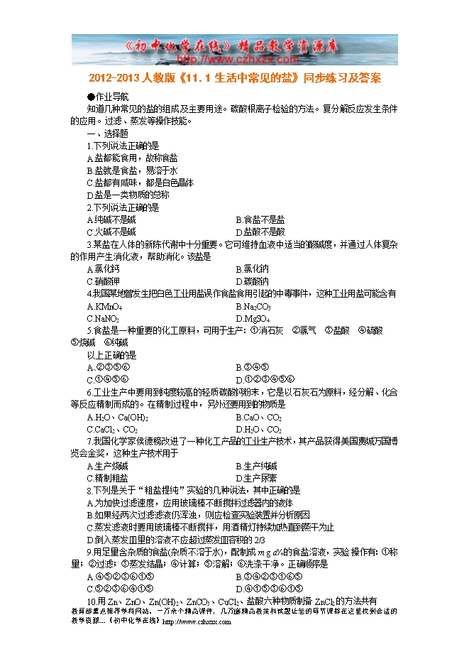 2012-2013人教版《11.1生活中常见的盐》同步练习及答案
