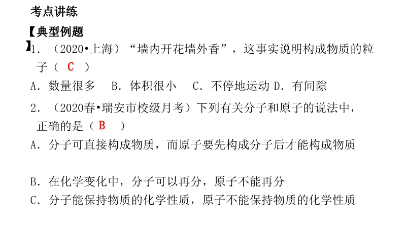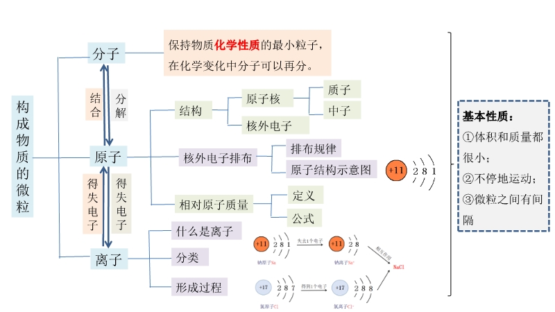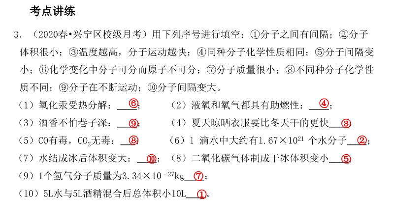 【内容简介】下列有关分子和原子的说法中,正确的是( )A.分子可直接构成物质,而原子要先构成分子后才能构成物质 B.在化学变化中,分子可以再分,原子不能再分 C.分子能保持物质的化学性质,原子不能保持物质的化学性质 D.分子和原子之间都有间隔,分子之间间隔较大,原子之间间隔较小用下列序号进行填空:①分子之间有间隔;②分子体积很小;③温度越高,分子运动越快;④同种分子化学性质相同;⑤分子间隔变小;⑥化学变化中分子可分而原子不可分;⑦分子质量很小;⑧不同种分子化学性质不同;⑨分子在不断运动;⑩分子间隔变大。(1)氧化汞受热分解: ; (2)液氧和氧气都具有助燃性: ;(3)酒香不怕巷子深: ; (4)夏天晾晒衣服要比冬天干的更快 ;(5)CO有毒,CO2无毒: ; (6)1 滴水中大约有1.67×1021 个水分子 ;(7)水结成冰后体积变大: ;(8)二氧化碳气体制成干冰体积变小 ;(9)1个氢气分子质量为3.34×10﹣27kg ;(10)5L水与5L酒精混合后总体积小10L 。形成:元素的原子在发生化学反应时都有一个趋势:通过得失电子使自己的最外层达到相对稳定的结构。具体过程如下图所示:......