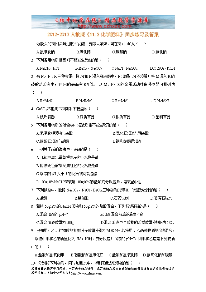 2012-2013人教版《11.2化学肥料》同步练习及答案