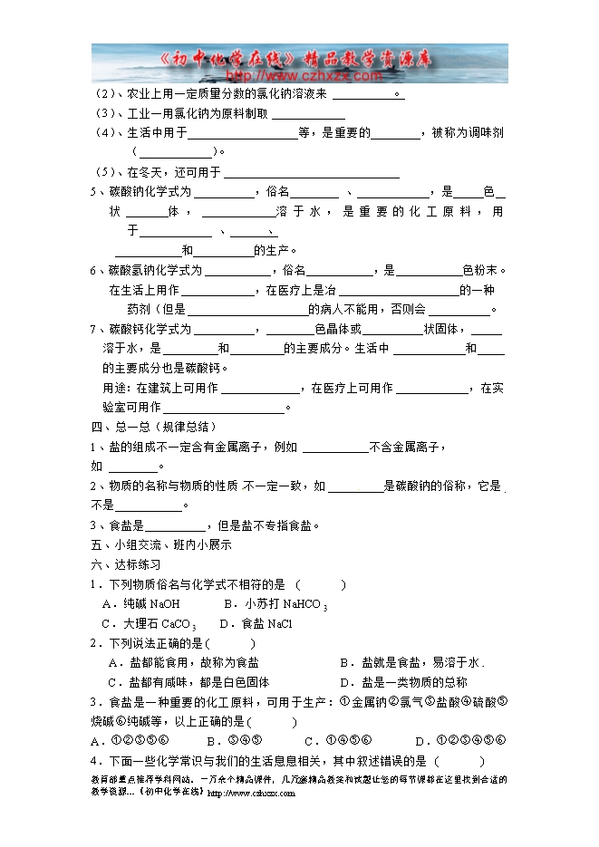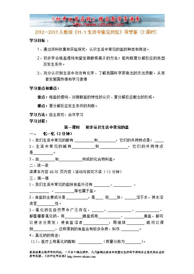 2012--2013人教版《11.1生活中常见的盐》导学案(3课时)