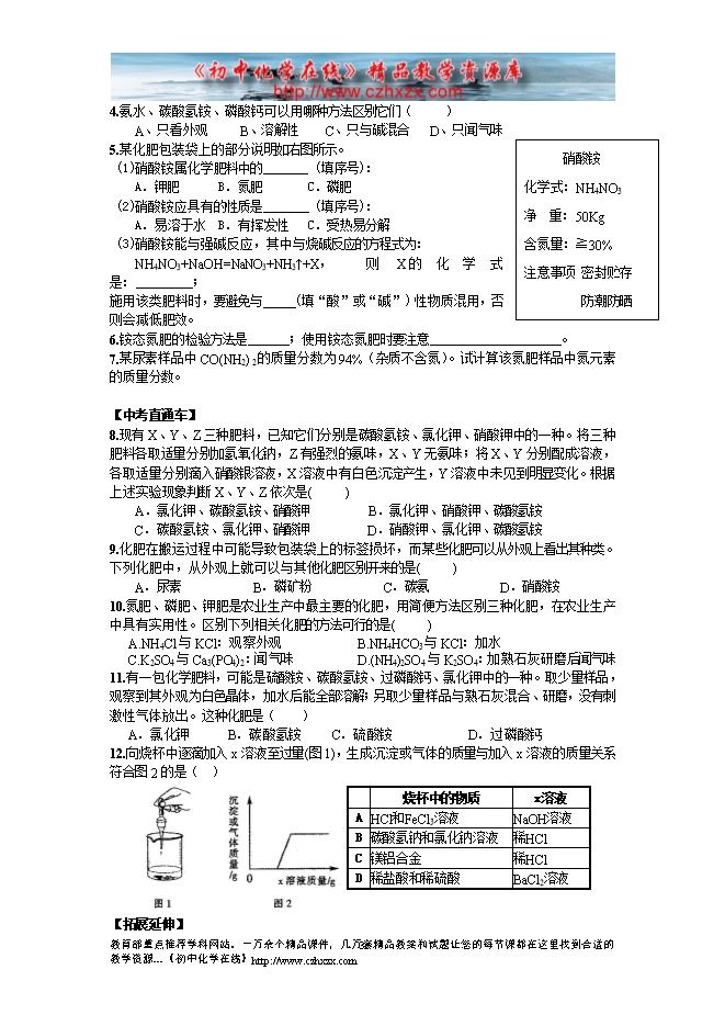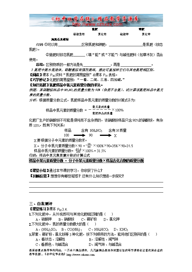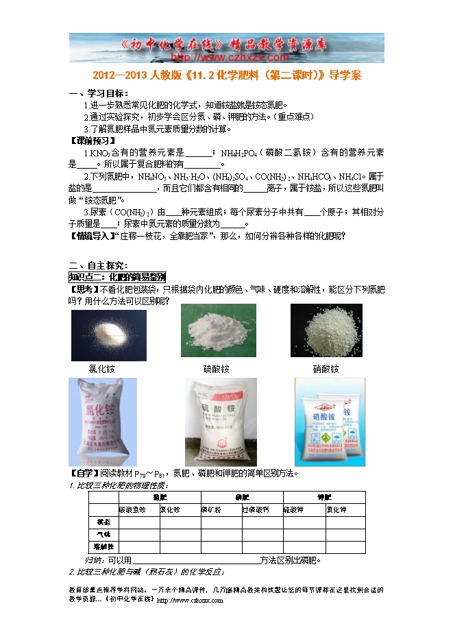 2012--2013人教版《11.2化学肥料(第二课时)》导学案