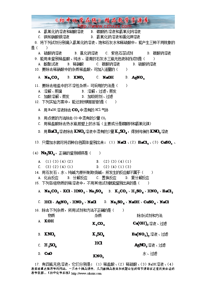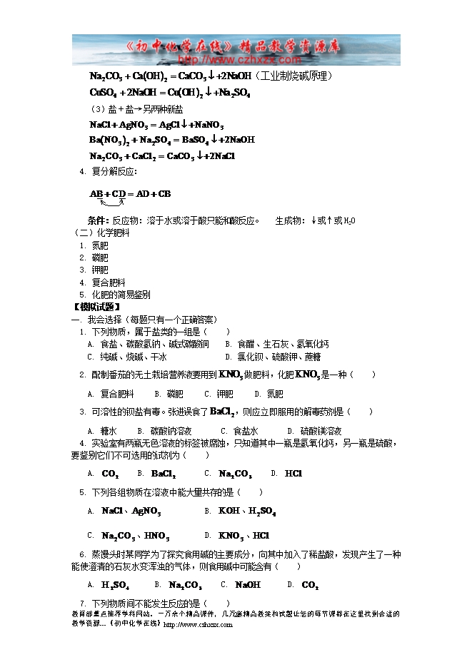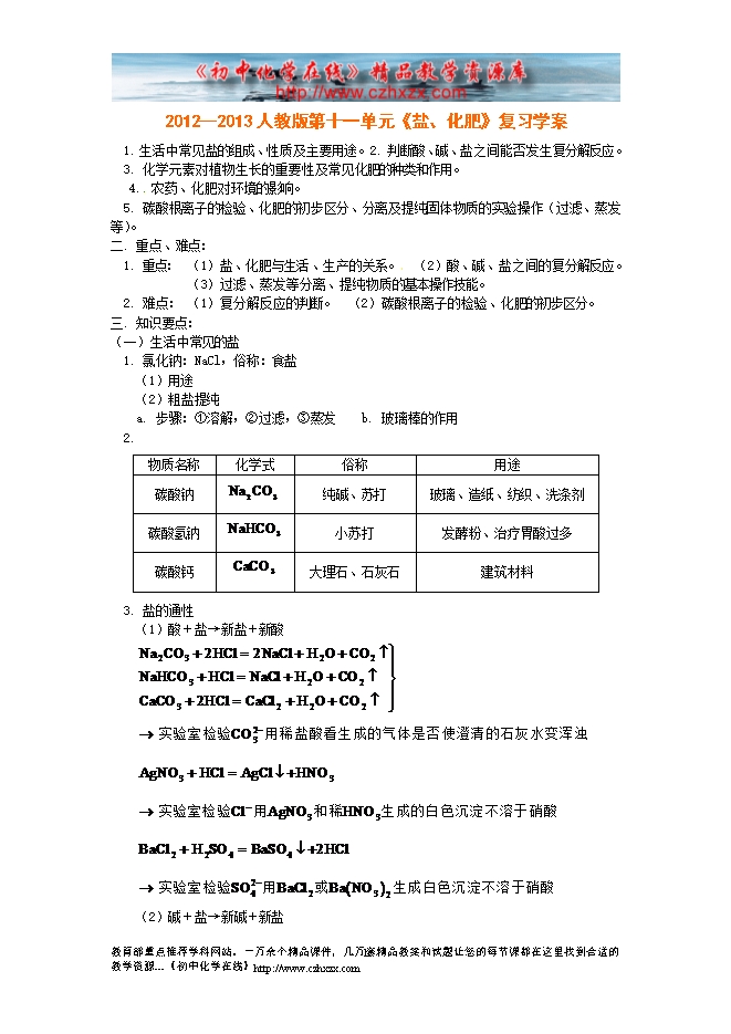 2012--2013人教版第十一单元《盐、化肥》复习学案