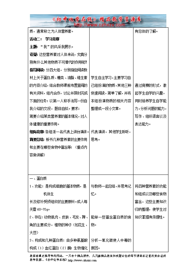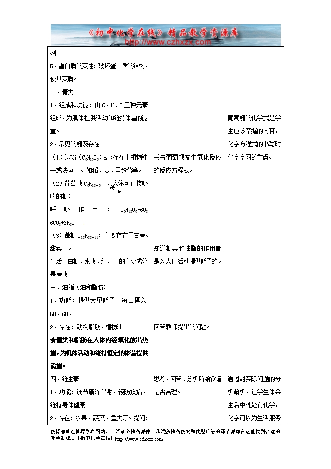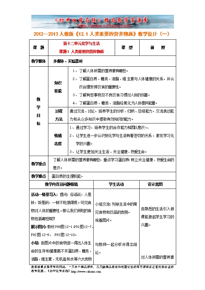 2012--2013人教版《12.1人类重要的营养物质》教学设计(一)