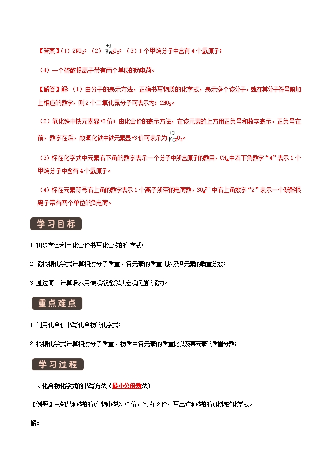 【精品】2021秋人教版初中化学《课题4.4 化学式与化合价(第二课时)》同步学案(解析版)