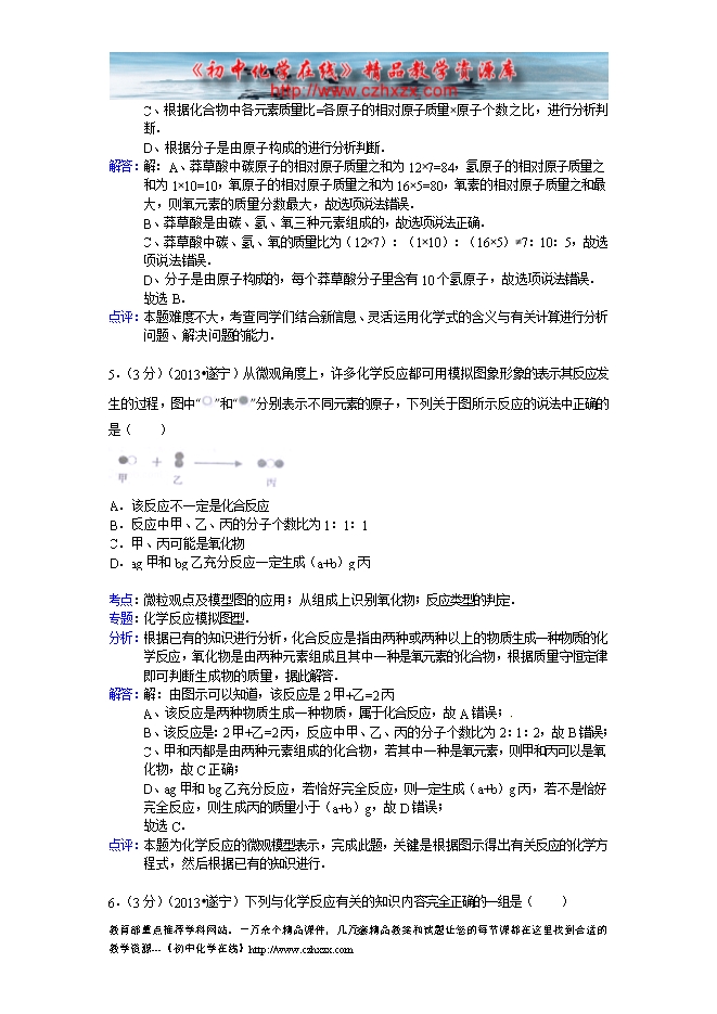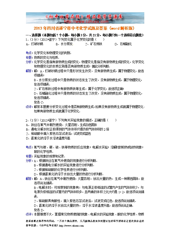 2013年四川省遂宁市中考化学试题及答案(word解析版)