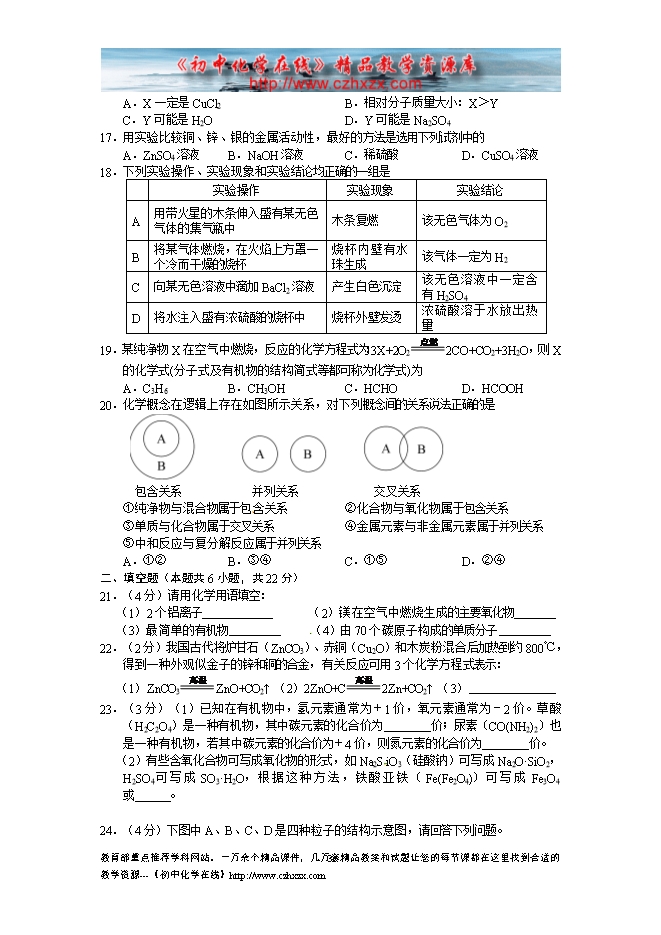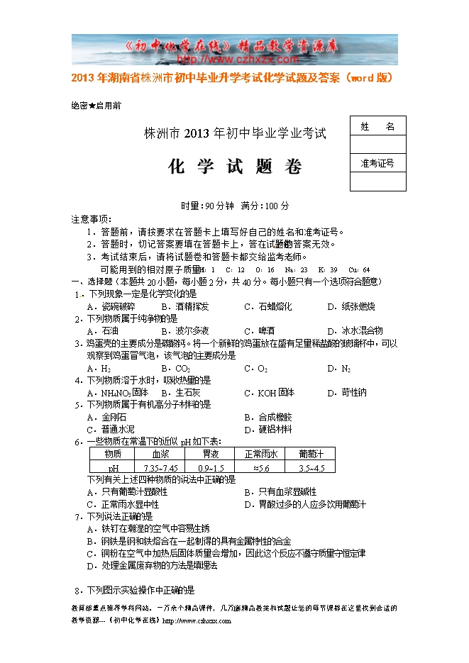 2013年湖南省株洲市初中毕业升学考试化学试题及答案(word版)