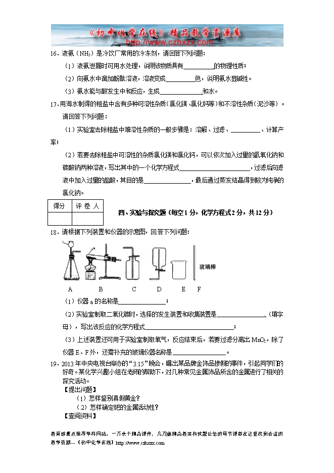 所属专辑: 《2013年各省市中考化学真题》专辑